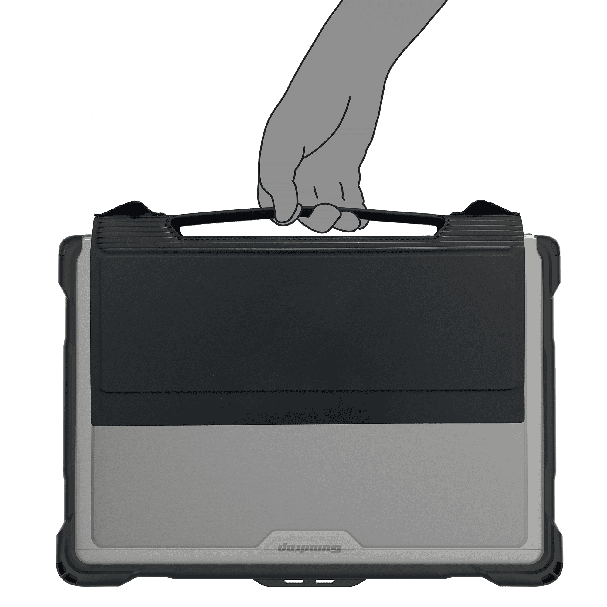 The Carry Handle comes permanently and securely attached to the Gumdrop case for added durability.